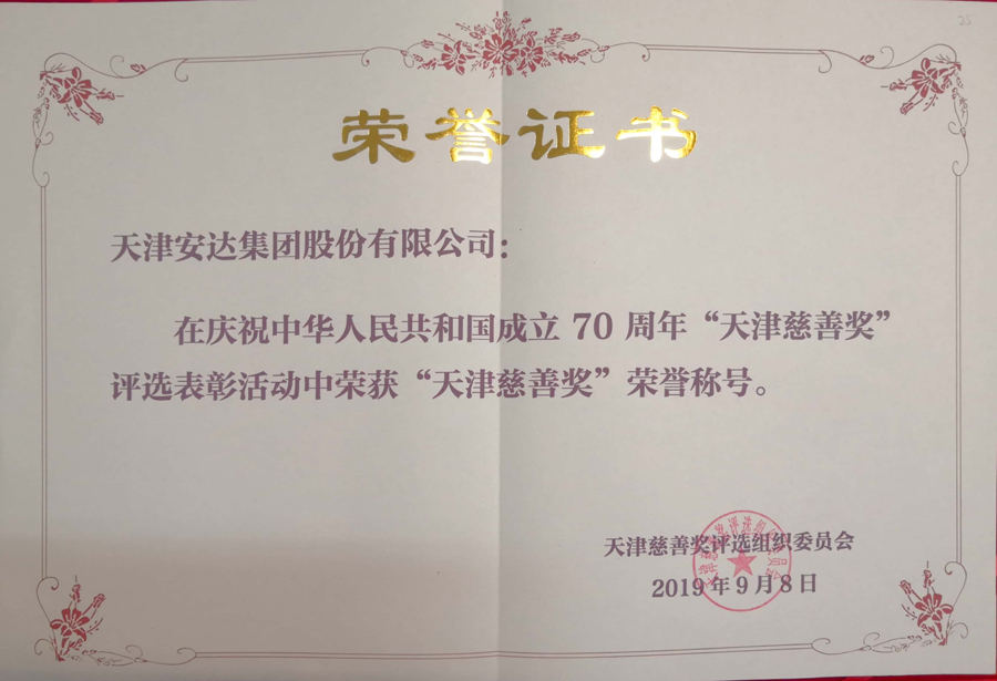 “天津慈善奖”自7月初启动,面向十八大以来为天津市公益慈善事业和东西部扶贫工作做出突出贡献的爱心单位和个人。在社会各界推荐、个人自荐的基础上,层层选拔,最终,57名个人、59个单位荣获“天津慈善奖”。天津安达集团因多年扶贫助困的爱心善举受到表彰,荣获“天津慈善奖”(单位)称号。