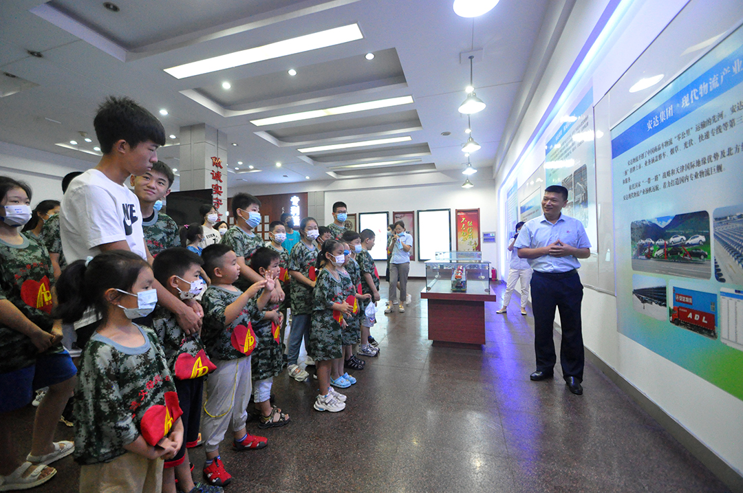 随后在安达集团关工委的统一安排下,安达职工子女,先后参观集团一至六楼展厅。在一楼科技产业展厅,集团董事长助理王俊鹏向孩子们详细介绍了安达四大板块业务。安达集团作为东丽区老牌民营企业,经过多年积淀发展,如今已壮大成为一家以现代物流为主,同时集制造、电子科技、生物科技为一体的综合型集团公司。公司目前拥有众多知识产权,成功研发出中置轴车辆运输车、厨余垃圾生化处理机、精准停放电子围栏、智能控制器、软骨栓和CARS等系列软骨再造产品、基于I型胶原蛋白延伸开发的护肤品等众多高端产品,在整个介绍过程中孩子们听的聚精会神,收获颇丰。