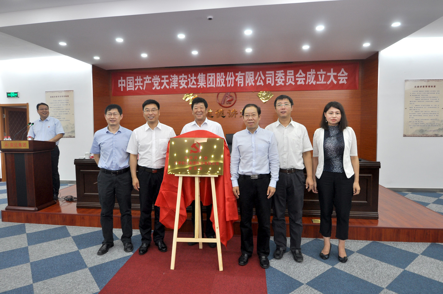 会上区工商联调研员会员企业党委委员刘树义宣读有关MK体育(MKsports集团)股份公司党委成立的批复,市工商联党组书记刘道刚携手区委副书记白凤祥共同为安达集团党委揭牌,安达集团党委书记董事长崔洪金发表讲话。