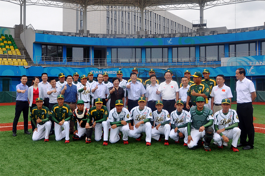 安达集团党委书记董事长崔洪金及市区相关领导与天津安达雄狮棒球队合影留念