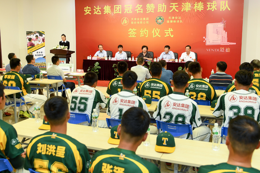 安达集团冠名赞助天津雄狮棒球队签约仪式现场